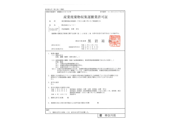 神奈川県許可産廃 第01401017629号