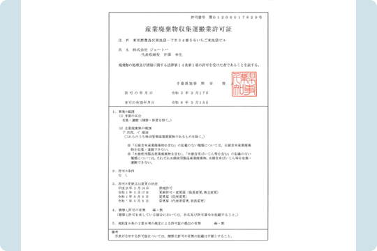 弊社は汚水槽・雑排水槽・排水管・貯水槽等の清掃・保守管理に伴う許可をきちんと取得している会社です。