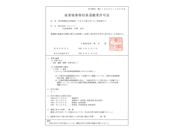 千葉県許可産廃 第01200017629号